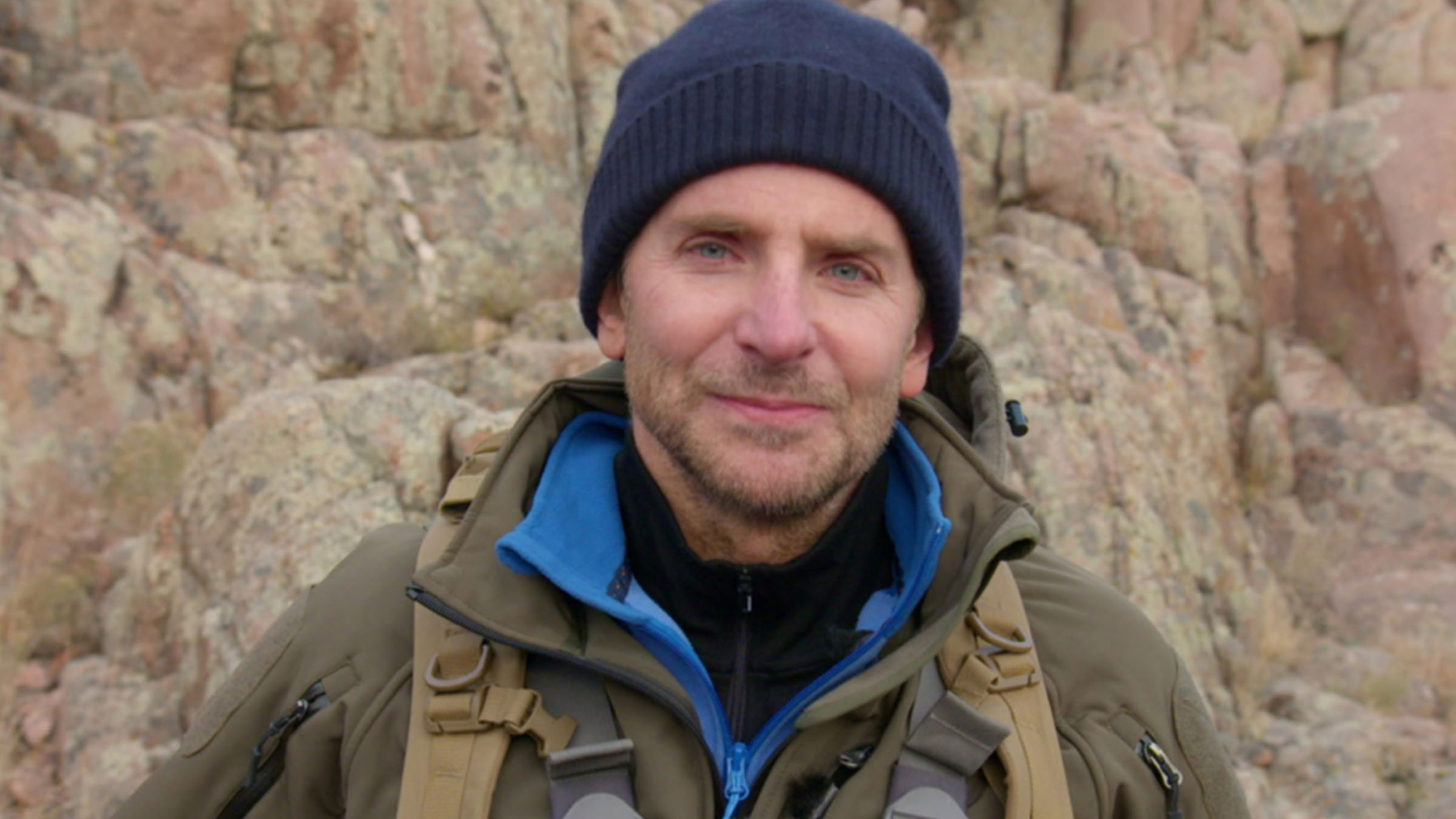 +Διασχίζοντας τις απότομες χαράδρες της λεκάνης του Γουαϊόμινγκ, ο Μπέαρ μαθαίνει στον Bradley Cooper πώς να χρησιμοποιεί το σχοινί ορειβασίας.