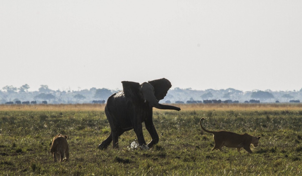 +Den afrikanske elefanten er verdens største landlevende pattedyr, og i Botswana finner vi flere eksemplarer av arten enn noe annet sted i hele verden. Det blir en storslått kamp. Hvert år vandrer elefantene over 11 000 kilometer i jakten på mat og vann. Men ørkenen er et farlig sted, spesielt under tørketiden, så elefantene må alltid være på vakt og bruke sin kløkt og styrke for å overleve. På reisen blir de nemlig forfulgt av verdens mest hensynsløse rovdyr: løven.