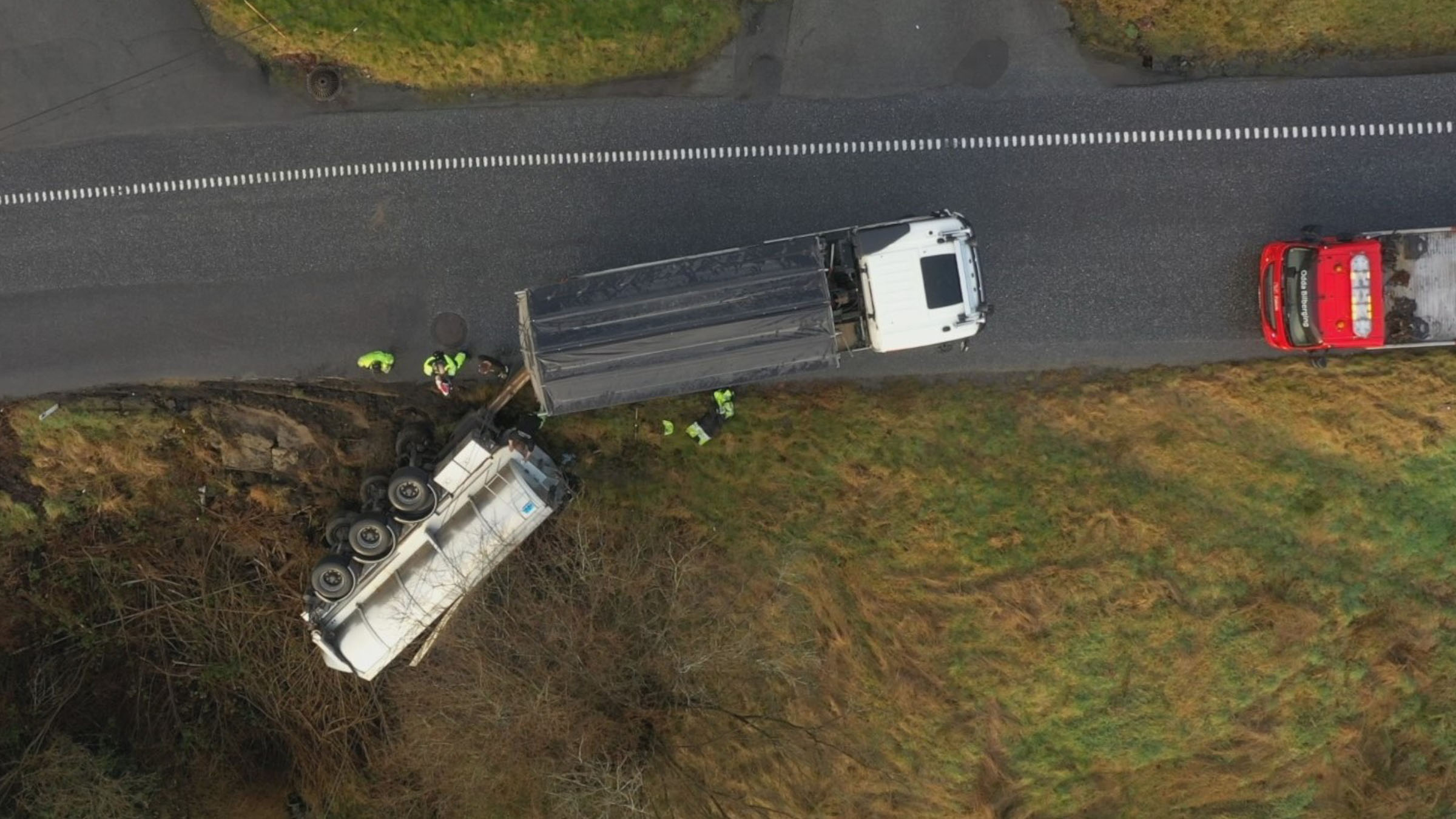 +Wypadek z udziałem wielu pojazdów zmusza Bjørna do poproszenia o pomoc konkurentów. Stig wyciąga ciężarówkę z pocztą znad krawędzi urwiska.