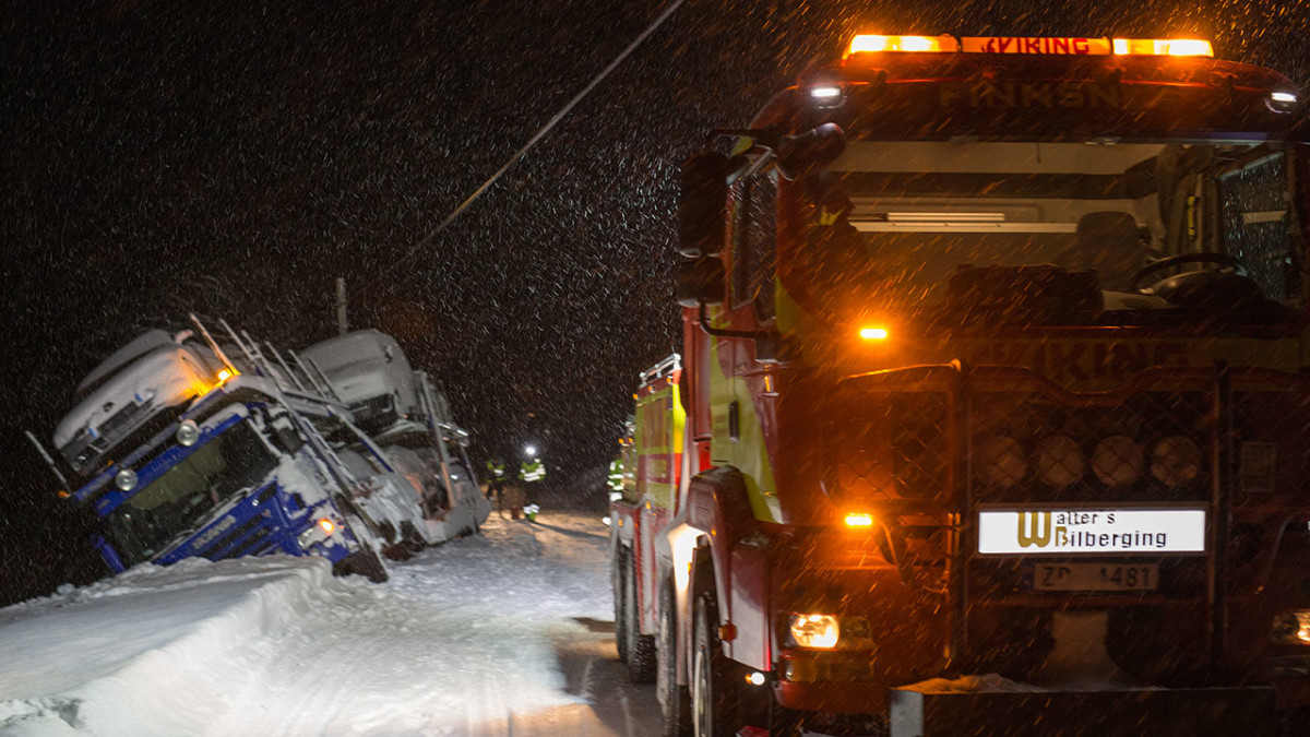+Z powodu małej ilości śniegu na drogach Thord i Bjorn poszukują zajęcia i zarobku. Podejmują się wyciągnięcia z fiordu tonącej łodzi. Na północy Norwegii niemiecki kierowca ciężarówki, który przewozi dziewięć samochodów osobowych, ześlizgnął się z drogi. Na pomoc wyrusza Frank Sebulonsen i jego ekipa.