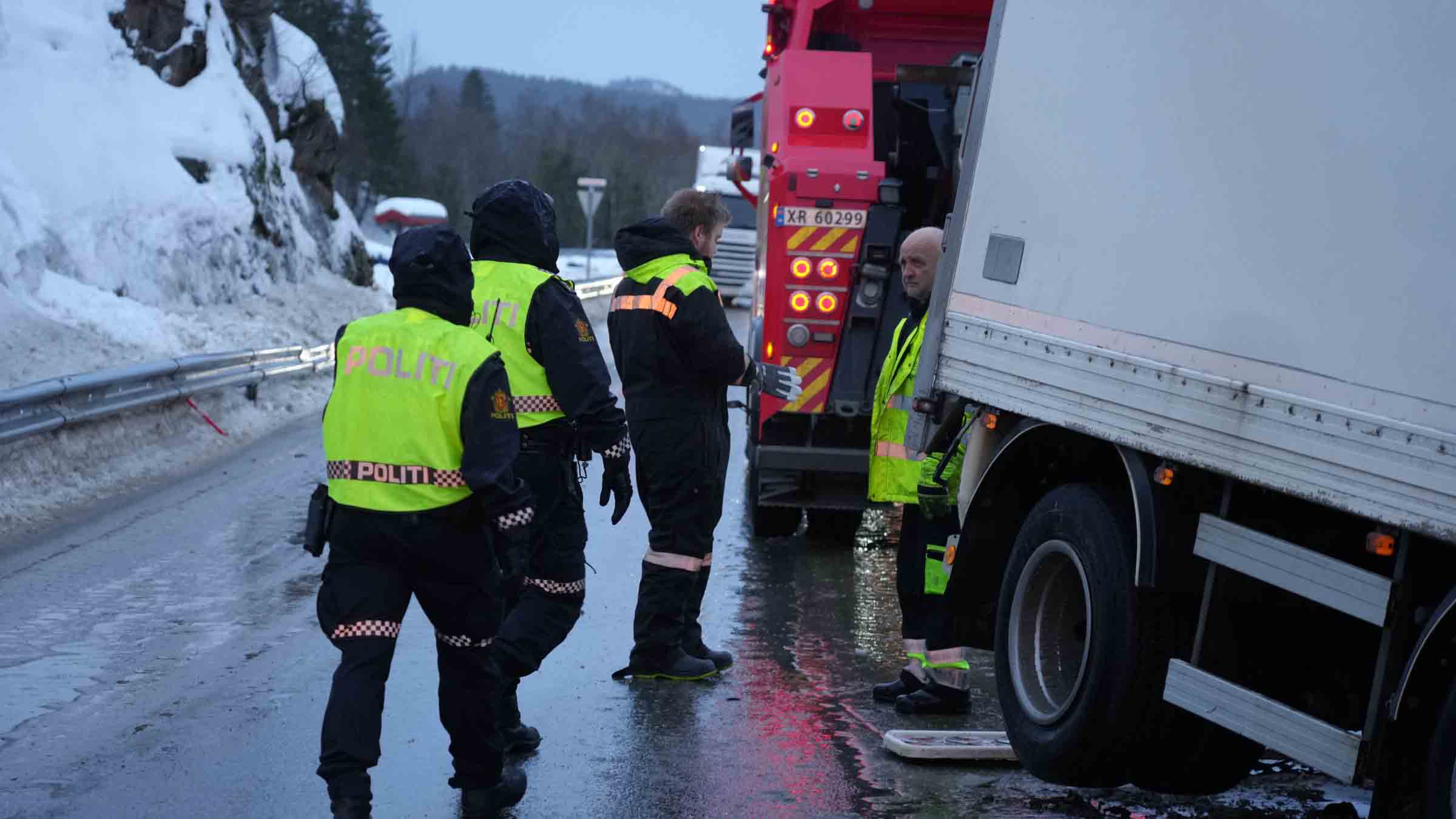 +Mimo że na drogach środkowej Norwegii zalega niewiele śniegu, polski kierowca ciężarówki traci kontrolę nad kierownicą i wypada z trasy, lądując w zamarzniętym potoku. Erik Flisen i Marius Winum starają się przywrócić ruch na zablokowanej trasie. W tym samym czasie w okolicach miejscowości Odda dochodzi do nagłego załamania pogody i obfitych opadów śniegu, przez co na drogach panuje chaos. W tych warunkach Thord Paulsen i Olav Eike spotykają tureckiego kierowcę, który jedzie przez góry bez obowiązkowych łańcuchów na oponach. Są zmuszeni powiadomić o tym policję.