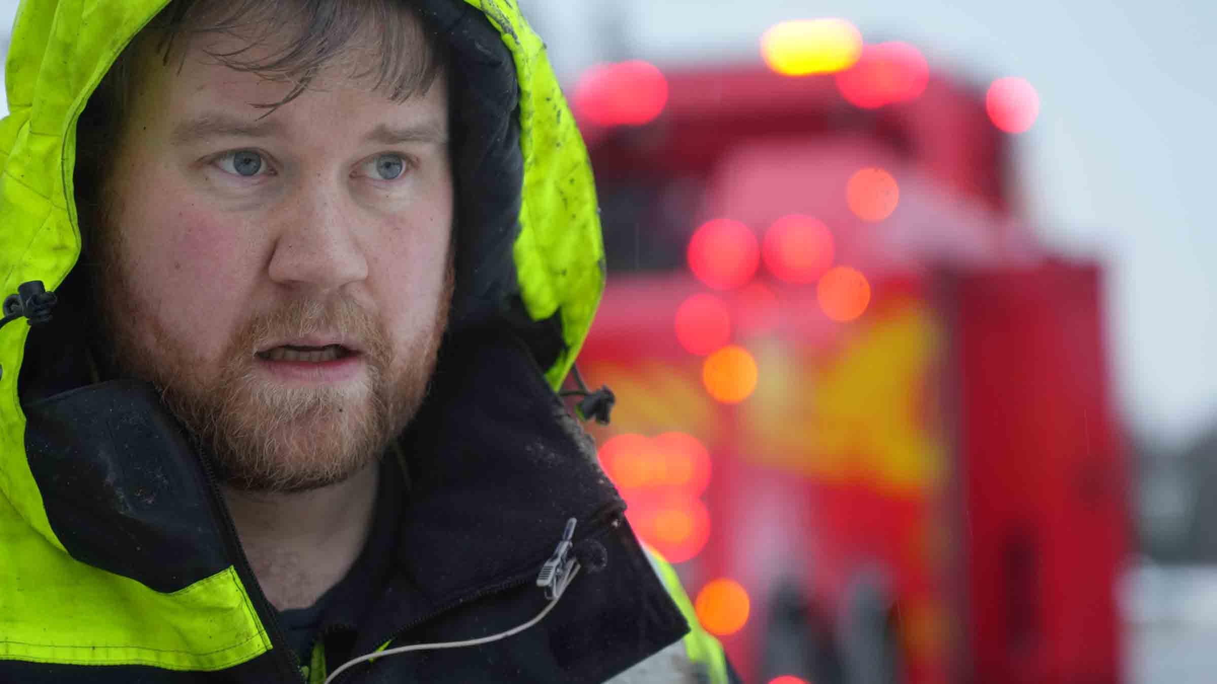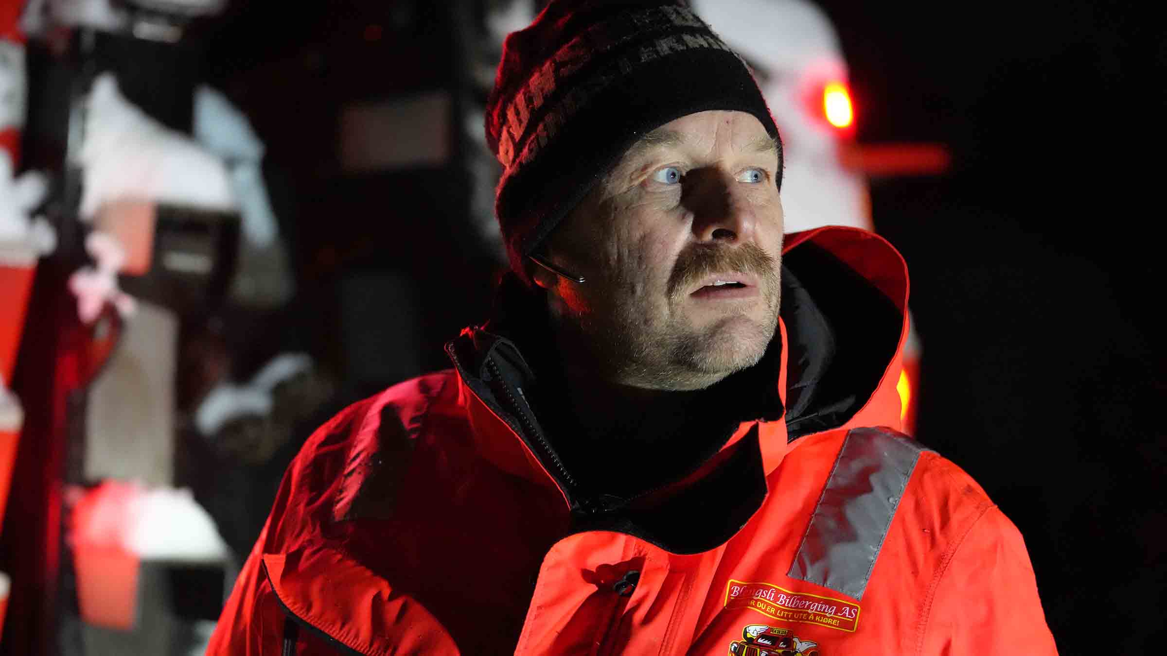 +Bjørn pomaga kierowcy z zagranicy, a Kristoffer i Erik stawiają czoło trudnym warunkom pogodowym podczas akcji ratunkowej w godzinach szczytu.