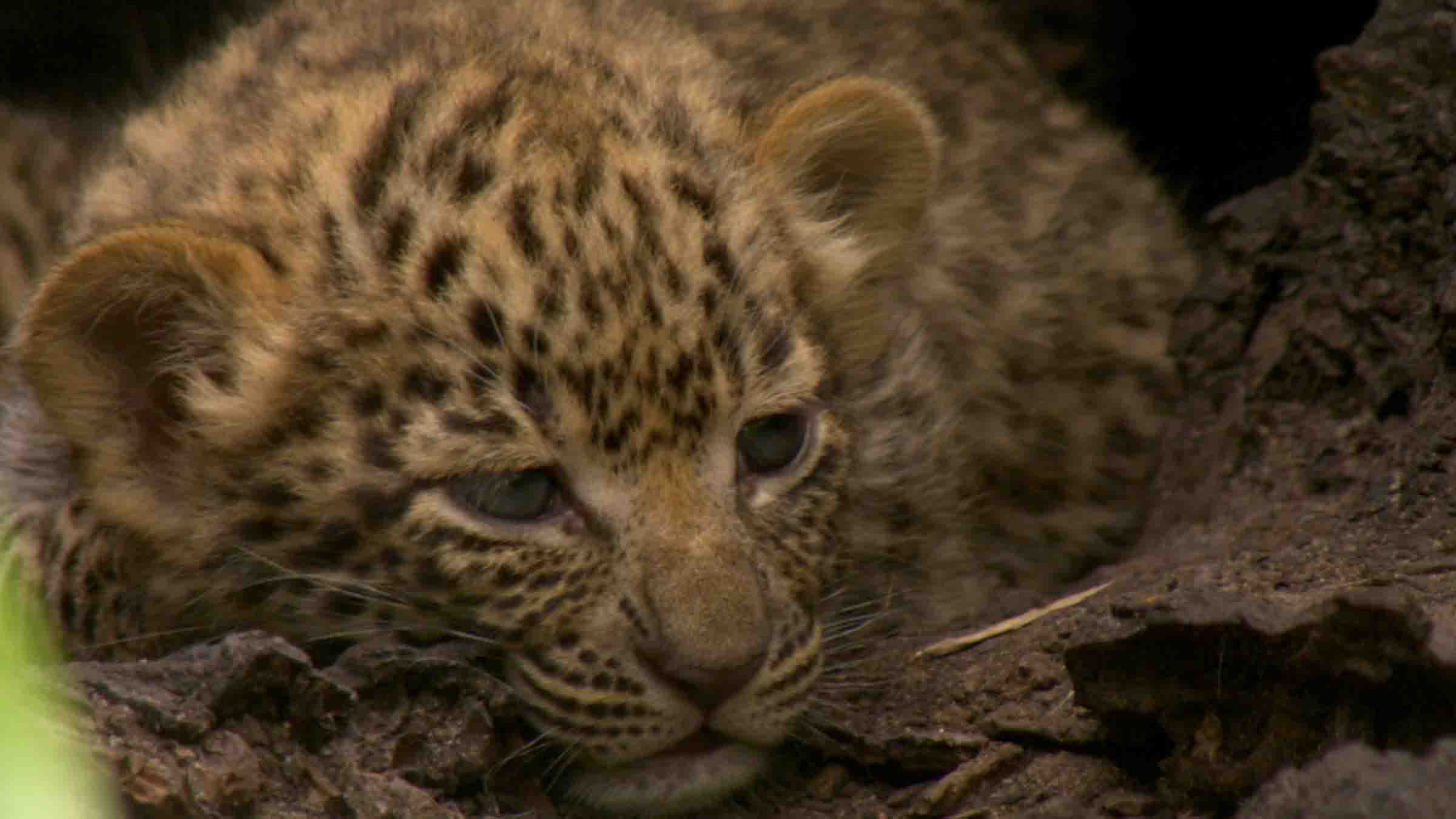 Programinfo I Leoparden med de smaragdgröna ögonen följer vi Toto, en leopard med ovanliga, blågröna ögon, under hennes första år i livet då hon lär sig grundläggande överlevnadstekniker.