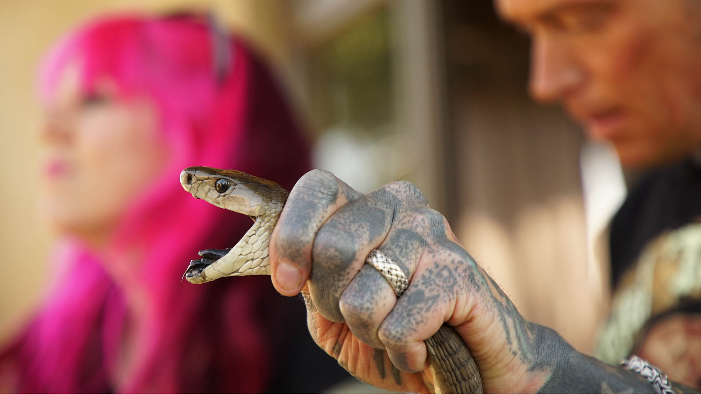 +Simon in Siouxsie lovita največjo afriško kobro, pitona in orjaško črno mambo.