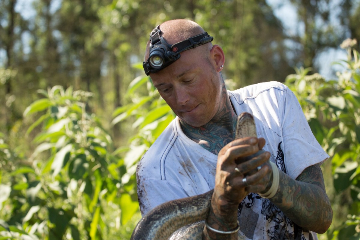 +Simon in Siouxsie morata opolnoči loviti črno mambo. Poleg tega pa morata pomagati pri kotitvi 25 pitonov.