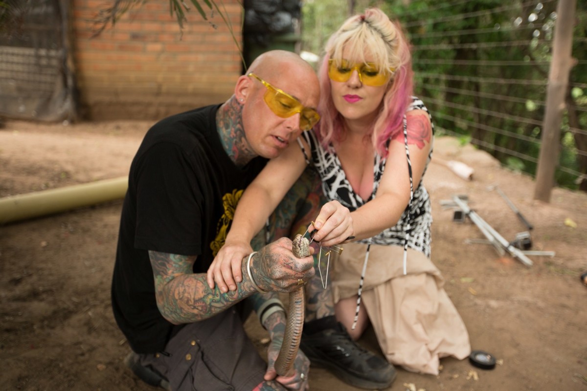 +Z gorečim pogledom in s hitrimi refleksi tetovirana lovilca kač Siouxsie Gillet in Simon Keys rešujeta nevarne kače iz nenavadnih in kljubovalnih krajev v Južni Afriki.